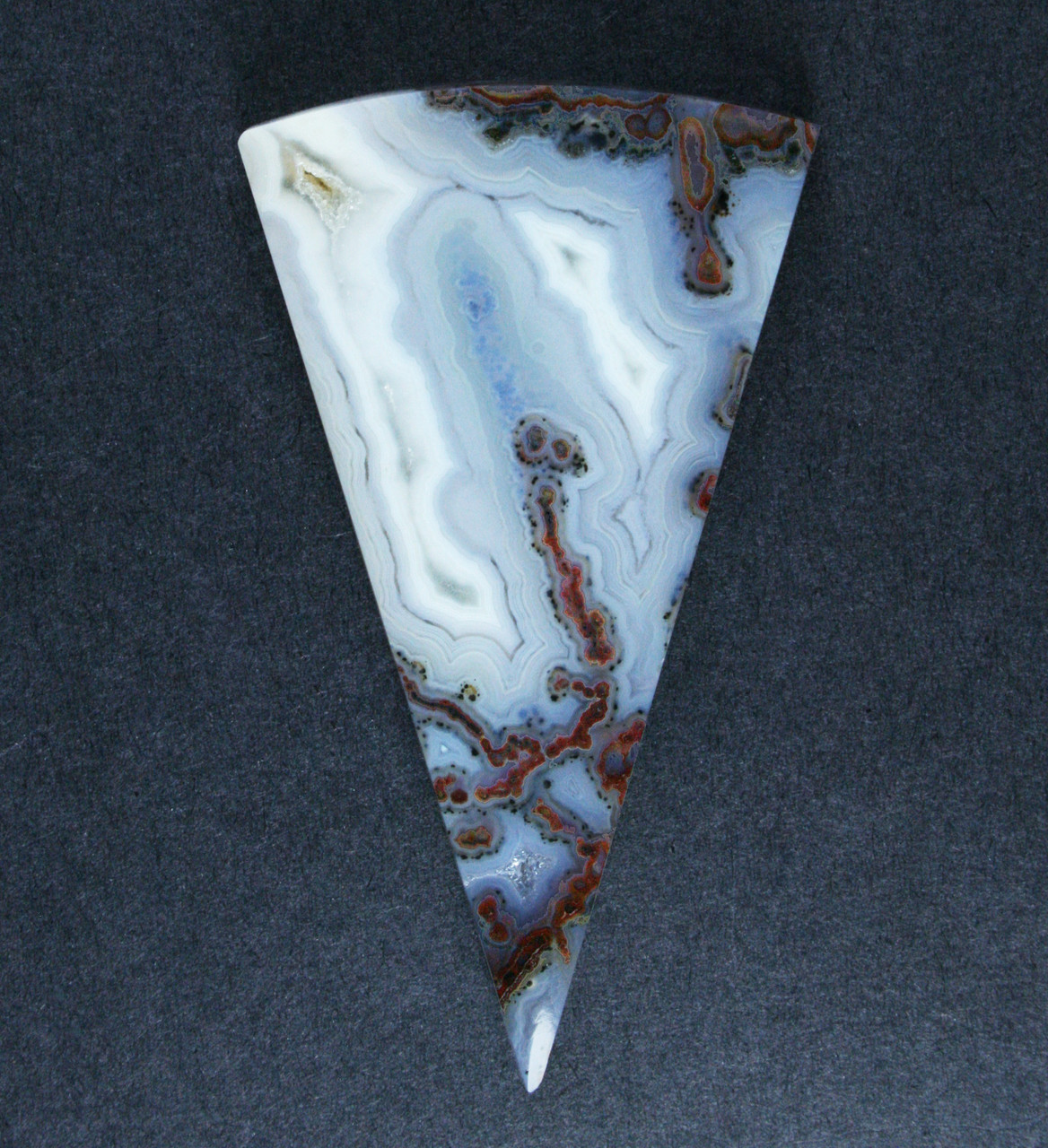 An beautiful designer cabochon of incredible Raspberry Plume Agate from Mexico. A gorgeous stone with fantastic raspberry red and black tubelike inclusions in white banded chalcedony with a small druzy pocket. A gorgeous gemstone cut from this exceptional agate. This stone has a glossy high polish front and back and a nice professional cut. Slightly beveled to facilitate setting, it will look beautiful set in one of your designs or as a terrific addition to your collection. This stone measures 52x29 mm and is 5.5 mm thick, the weight is 47.5 cts. Don't let this one get away! As always, Thanks for looking! |