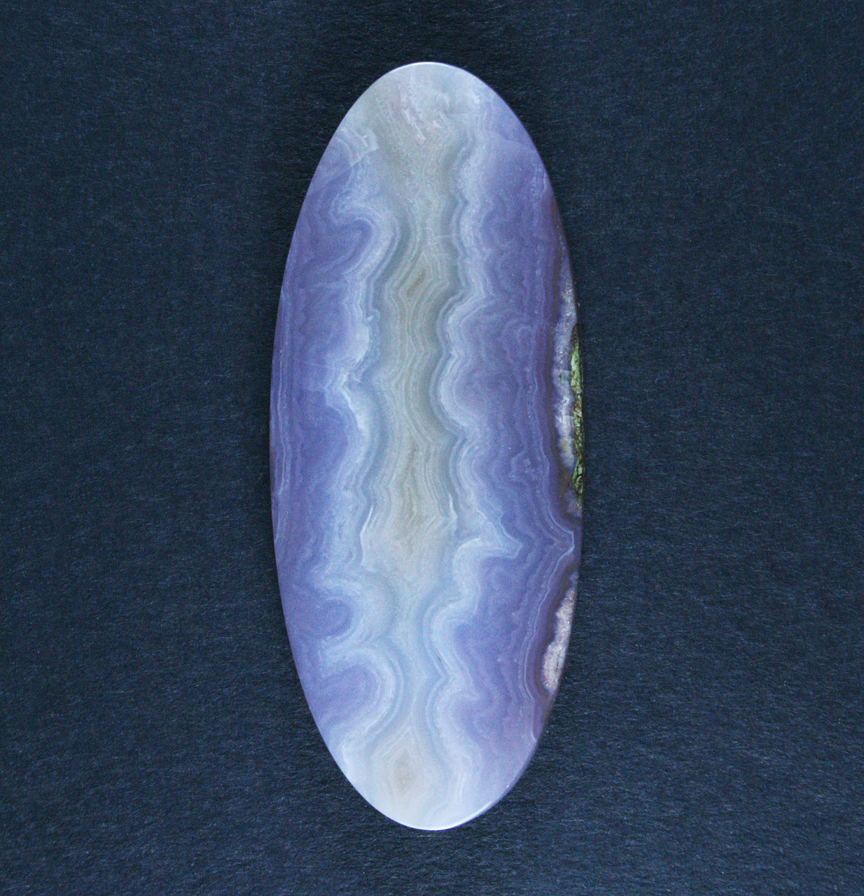 A pretty designer cabochon of purple, yellow and white Aztec Lace Agate. Intricate purple and yellow fortification with a beautiful assortment of lighter purple banded patterns. Wild waves and patterns with gorgeous colors in this beautiful stone. It has a glossy polish front and back and a nice professional cut. Slightly beveled to facilitate setting, it will look beautiful set in one of your designs or as a terrific addition to your collection. This stone measures 50x20 mm and is 5 mm thick the weight is 57 cts. A real beautiful stone for you! As always, Thanks for looking! . |