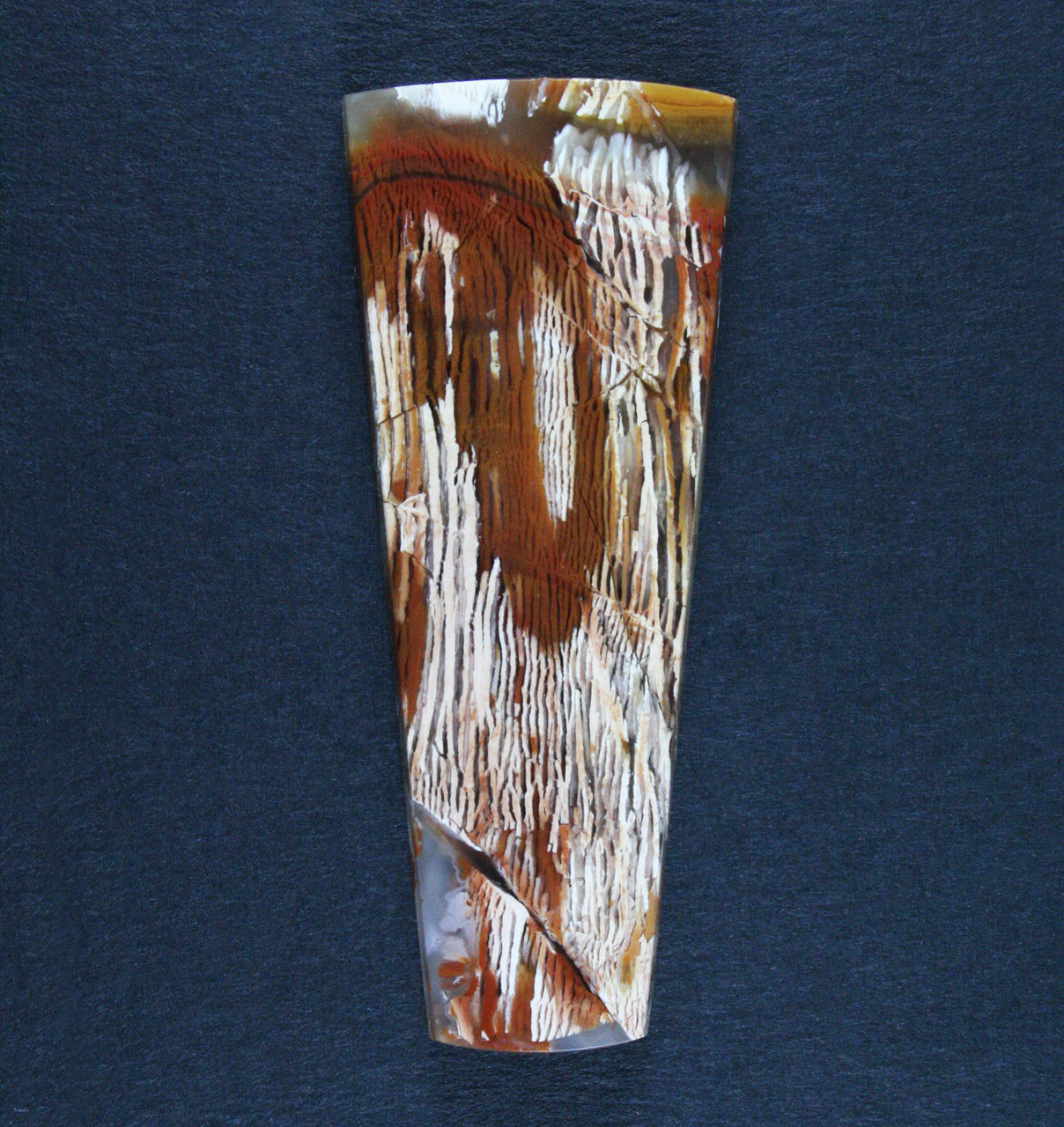 A dramatic designer cabochon of old school Howardite. Howardite is a rare, old-timey cutting material mined in the 60's, it's a silicified/opalized/agatized tuff from northern Nevada. Red,pink and yellow in a wood grain pattern with translucent sections in between. A really nice colorful stone! It has a glossy high polish front and back and is professionally cut. Slightly beveled to facilitate setting, it will look terrific set in one of your designs or as a terrific addition to your collection. This stone measures 53x21 mm and is 4 mm thick the weight is 39 cts. Don't let this one get away! As always, Thanks for looking! Please visit me on Facebook as Gerard Scott Designs - Designer Cabochons sign up for " Stone of the Day " and receive a daily photo of a favorite cab from the archives. . |